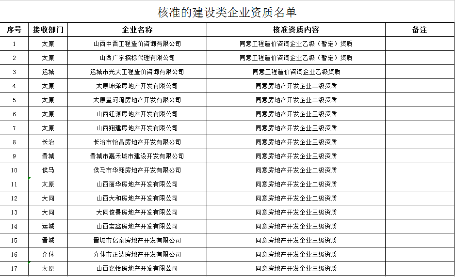 根据《建筑法》、《行政许可法》、《房地产开发企业资质管理规定》(建设部令第77号)等有关规定,现将经我厅依法审查核准的17家建设类企业,予以公布(见附件)。